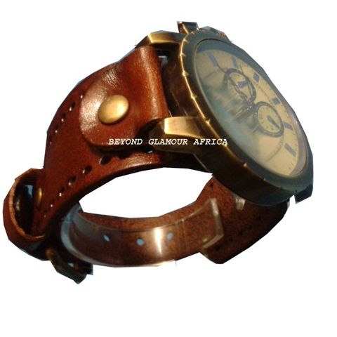 Genuine brown leather band with buckle closure. Multifunctional watch with stopwatch  functionality;three step dials to track hours,minutes  and seconds