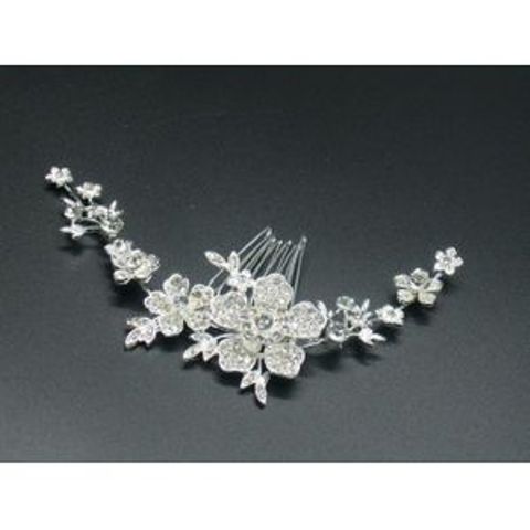 • Add a touch of floral beauty with this unique bridal hair comb featuring rhinestones bursting with sparkle and accenting sprays.