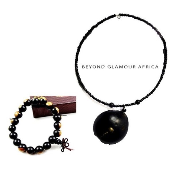 Handmade beaded wood necklace with hook closure gives edgy definition to trendy modern fashion. An African fashion accessory. This comes with shamballa bracelet