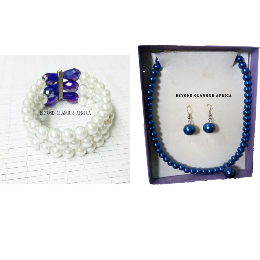 Handmade Pearl bead earrings and necklace with hook closure gives edgy definition to trendy modern fashion.This statement necklace of flat and shiny beads takes 3 hours for a craftsman to craft one of a kind.Trendy modern African fashion accessory set comes as a set of earrings,bracelet and easy to wear Necklace