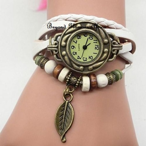 The complementary vintage leaf beads pendant gives the watch an extraordinary look of charm. more than a practical watch, it is also a leather bracelet. charming wrist watch will endear you to anyone who has an eye for classic vintage designs. damp-proof watch with the perfect finishing of multi-layer watch strap, as well as its alloy snap fastener, will enable it to stay fastened and comfortable on you, all-day long. two buttons for adjusting size. total band length is 21.5cm; minimum perimeter: 16cm; maximum perimeter: 17cm