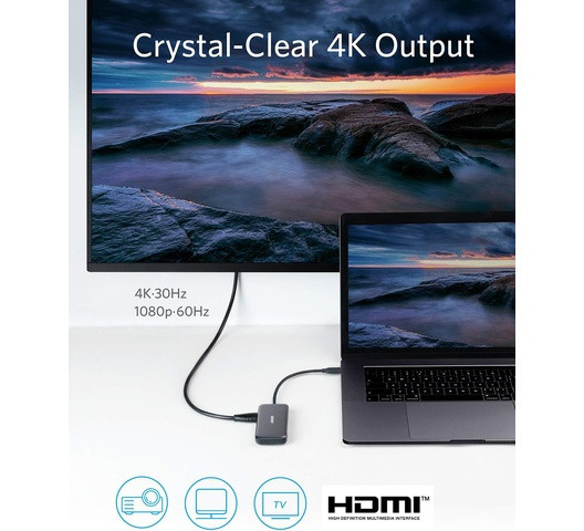 • Add more ports to your USB-C laptop with the Anker USB-C 5-in-1 multi-port adapter