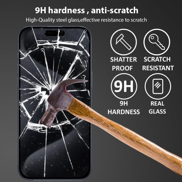 Four layer design includes an anti-fingerprint layer, double protection layer, shatter-proof layer, and bubble-free layer with touch sensitivity