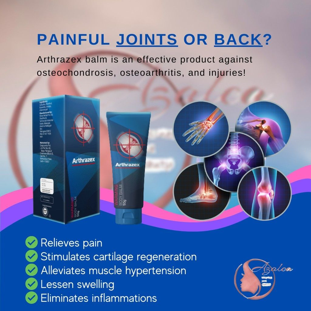 Arthrazex is a balm that quickly and naturally relieves joint pain. It restores mobility of the whole body with no side effects.