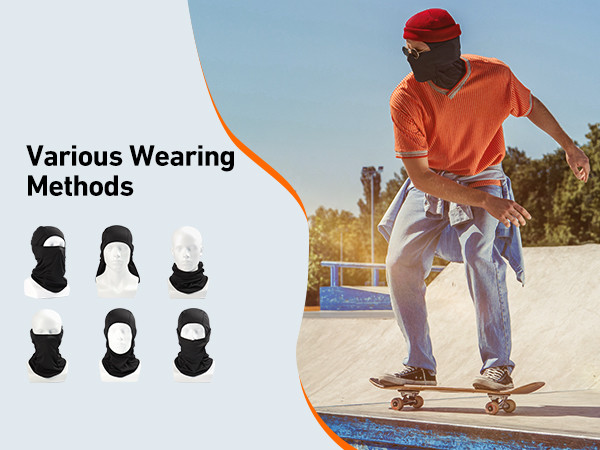 Multiple Wearable Methods:Headband as you like Great for outdoor activities,Can be worn as opened or closed balaclavas, face masks, neck gaiters, scarfs, bandanas, helmet liners, headbands