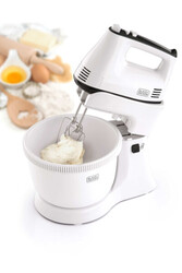 • 3.5 L geared rotating bowl for consistent mixing