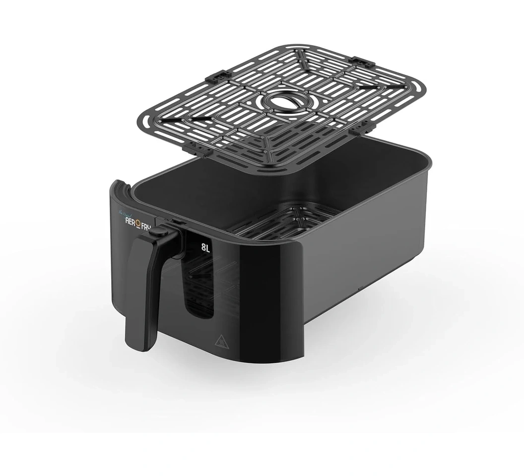 • Large 8L Capacity Basket: Spacious rectangular basket, ideal for cooking up to 1.5 kg of chicken or 1.75 kg of fries, perfect for family-sized portions.