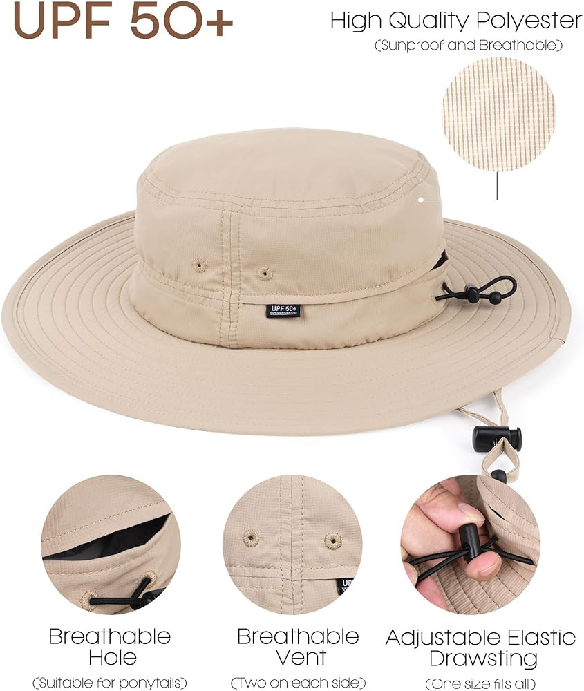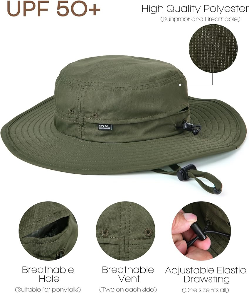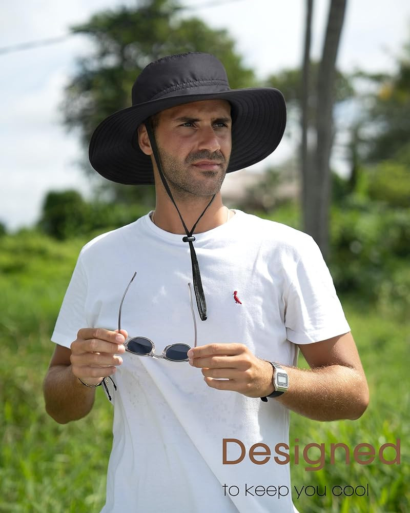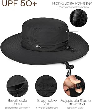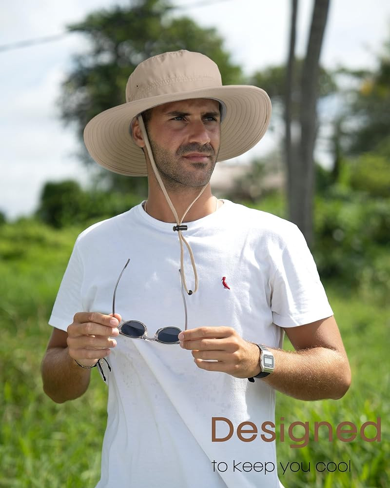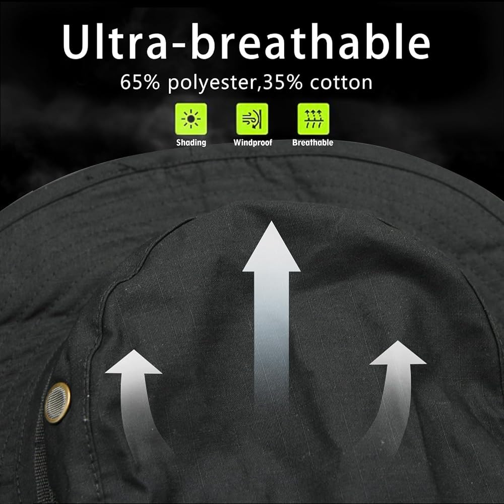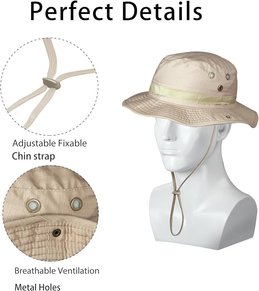 • Adjustable Chin Drawstring: This boonie hat is equipped with an adjustable chin drawstring to hold the hat in place on windy days and to ensure a secure fit.