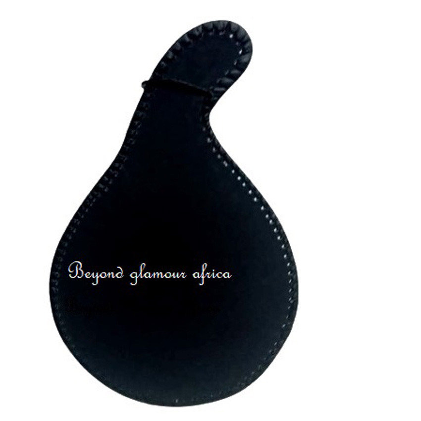 African Brown Leather Bound mirror with purple flowers
