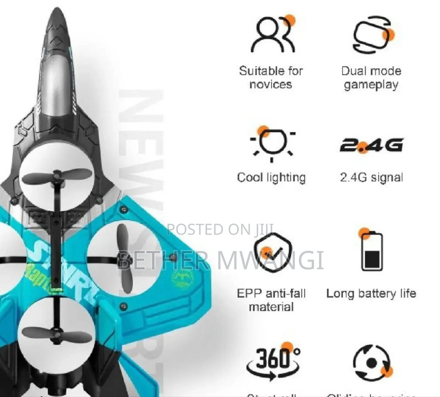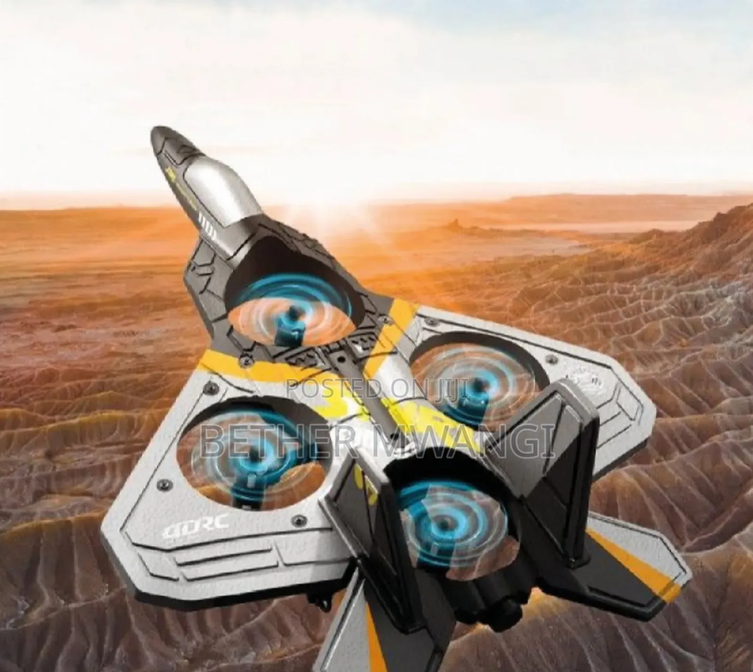 Excellent design: 4d-v17 pilane no assembling required and getting to fly when you open the box. press a button on remote control, the fighter jet drone will flip 360 degree when flying. it adopts 6 axis gyro flight for very stable flight experience, one key take off and landing. it is easy to fly for kids, beginners and adults,help beginners learn to fly step by step. durable design & safe materials:made of erp high-toughness drop-resistant material and electronic elements.equipped with a rechargeable battery(charging time is 1 hours) and the built-in strong power motor, which can last for 25 minutes(free two rechargeable batteries) radio control: our radio controlled planes come with a 2.4ghz & gravity sensitive transmitter that easily operates the plane from a distance.