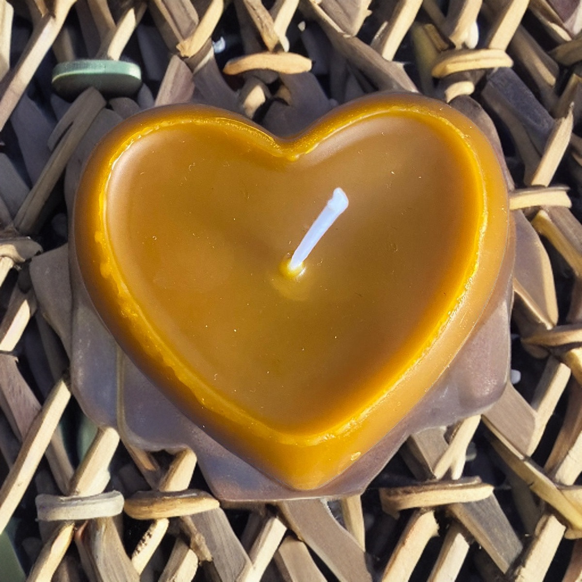 Shaped like a heart, this beeswax candle radiates a loving, warm glow that enhances the atmosphere in any room. Whether naturally honey-scented or infused with one of our signature fragrances, it provides a charming touch to your space. Beeswax is known for its clean burn and long-lasting qualities, making it a thoughtful addition to your home décor while supporting an eco-conscious lifestyle.