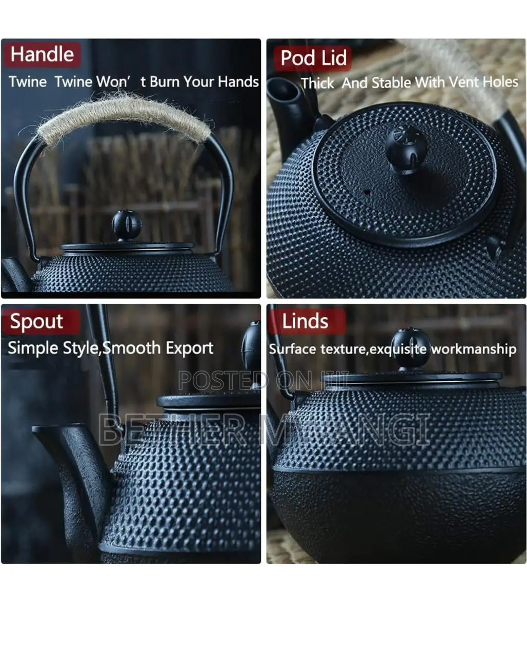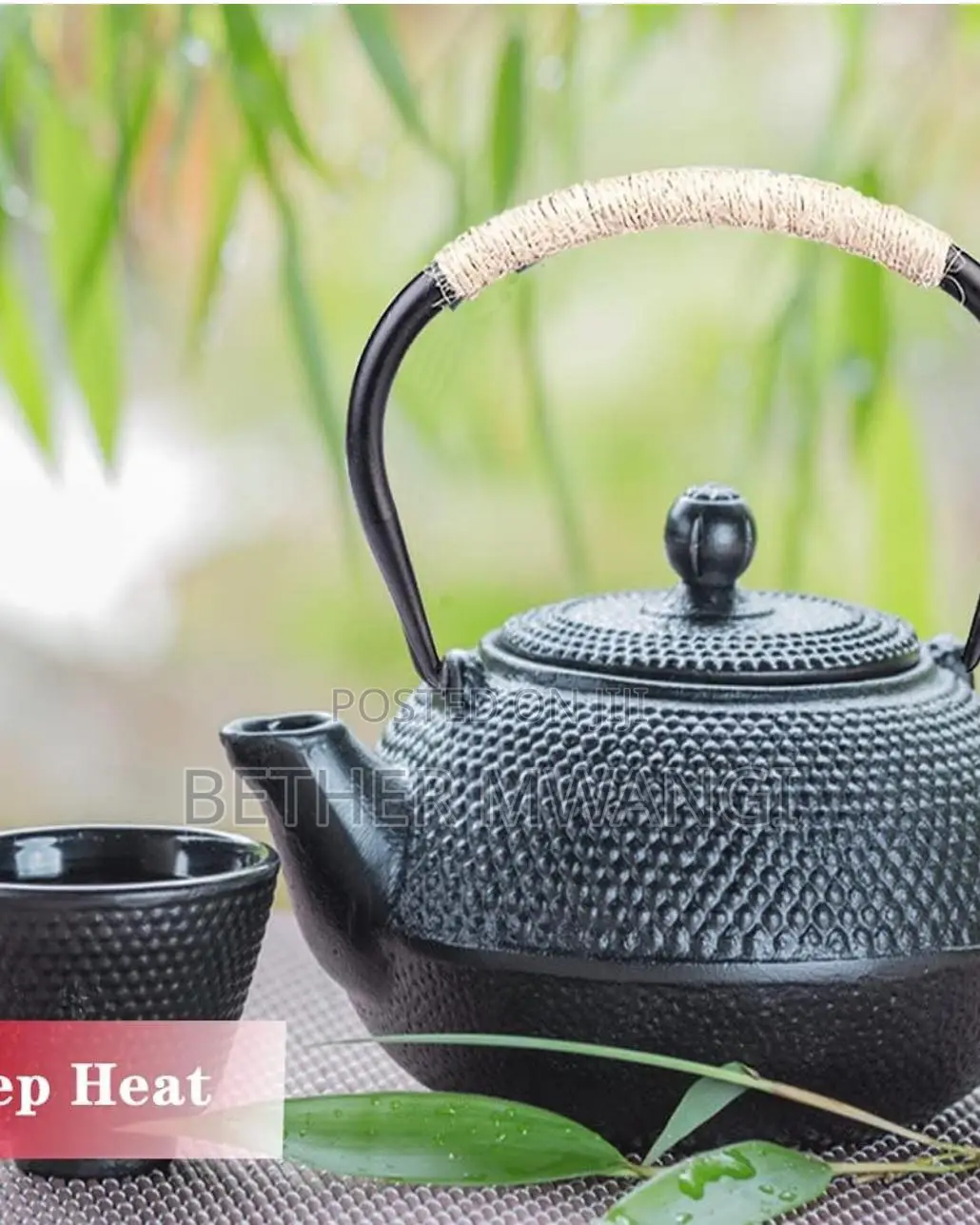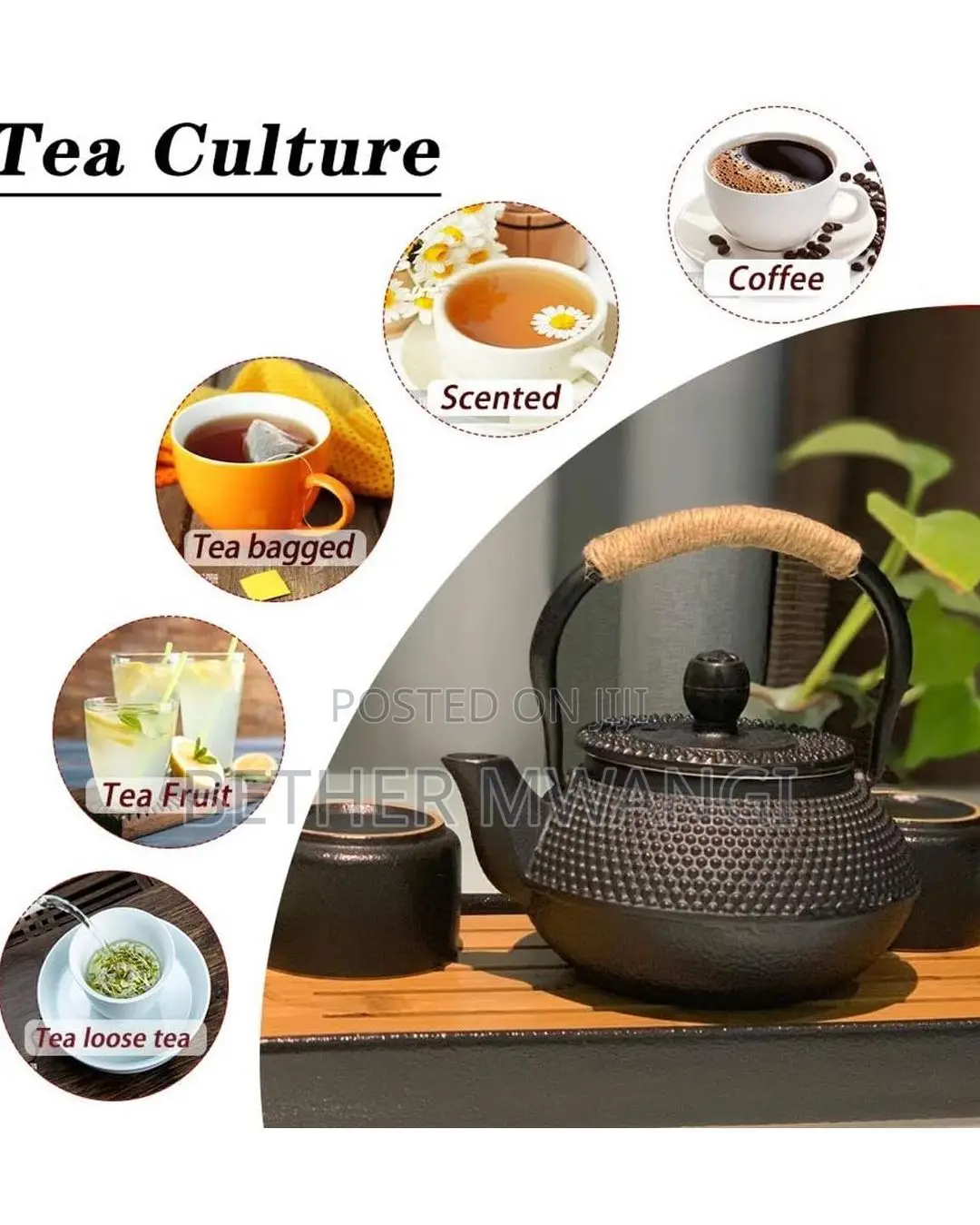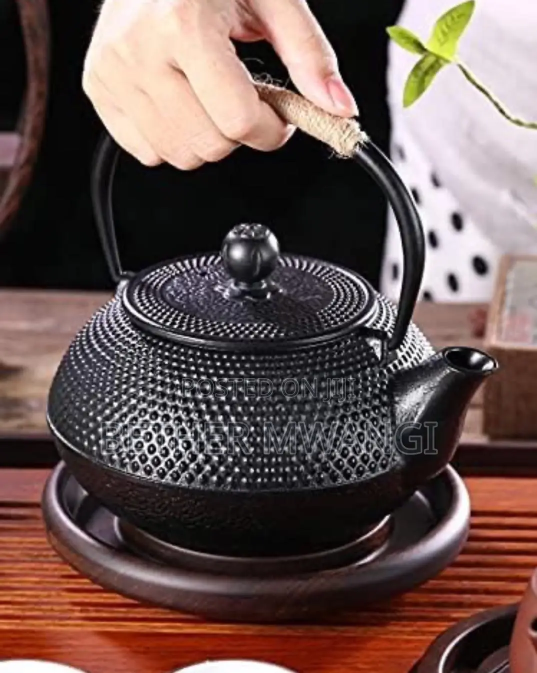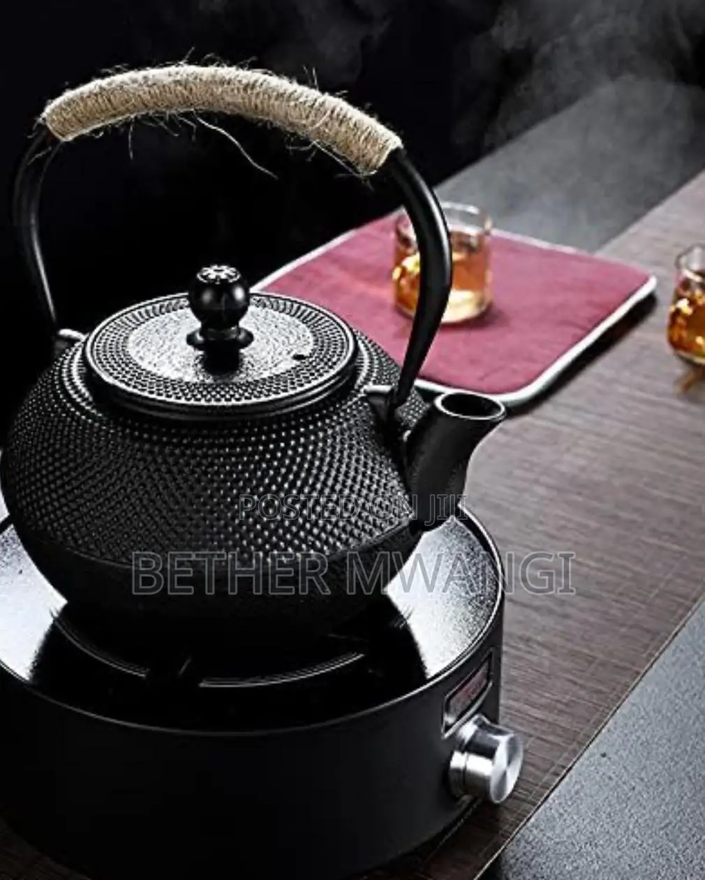 Get this classy japanese cast iron teapot/tea kettle at the best price in Kenya. It has stainless steel infuser for stovetop . Safe coated with enemeled interior.