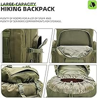 • 【Hiking Backpack and Waist Bag Size】: This waterproof lightweight hiking backpack size 15.35 * 8.66 * 31.49 inches (L x W x H), mountaineering backpack weighs only 3.63 pounds / 1.64 kg, carrying waist bag size 15.74 * 3.93 * 6.69 inches (L x W x H) waist bag only It weighs 0.99 lbs/0.50 kg and will not add burden to your travel.The military tactical bags is suitable for camping, hiking, hunting, camping, climbing. It can replace a suitcase.
