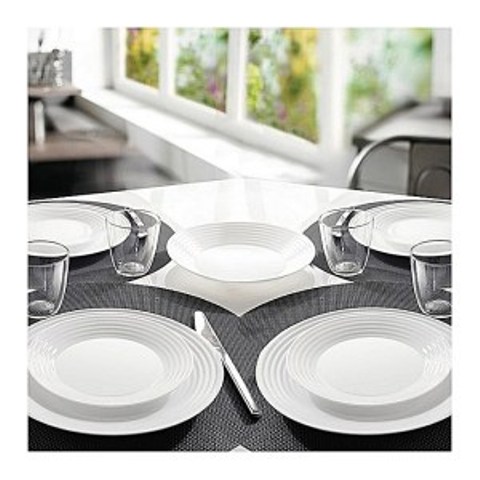 A Stylish dinner plate with ridged edges made from opal tableware made of white tempered glass. The glass undergoes a specific hardening treatment in order to guarantee better thermal and mechanical durability while using. It is a non-porous material, thus it does not keep any microorganisms, it is 100% hygienic.Harena because of its simple form, quality and reasonable price is very popular among our customers. Works perfectly in different table arrangements.