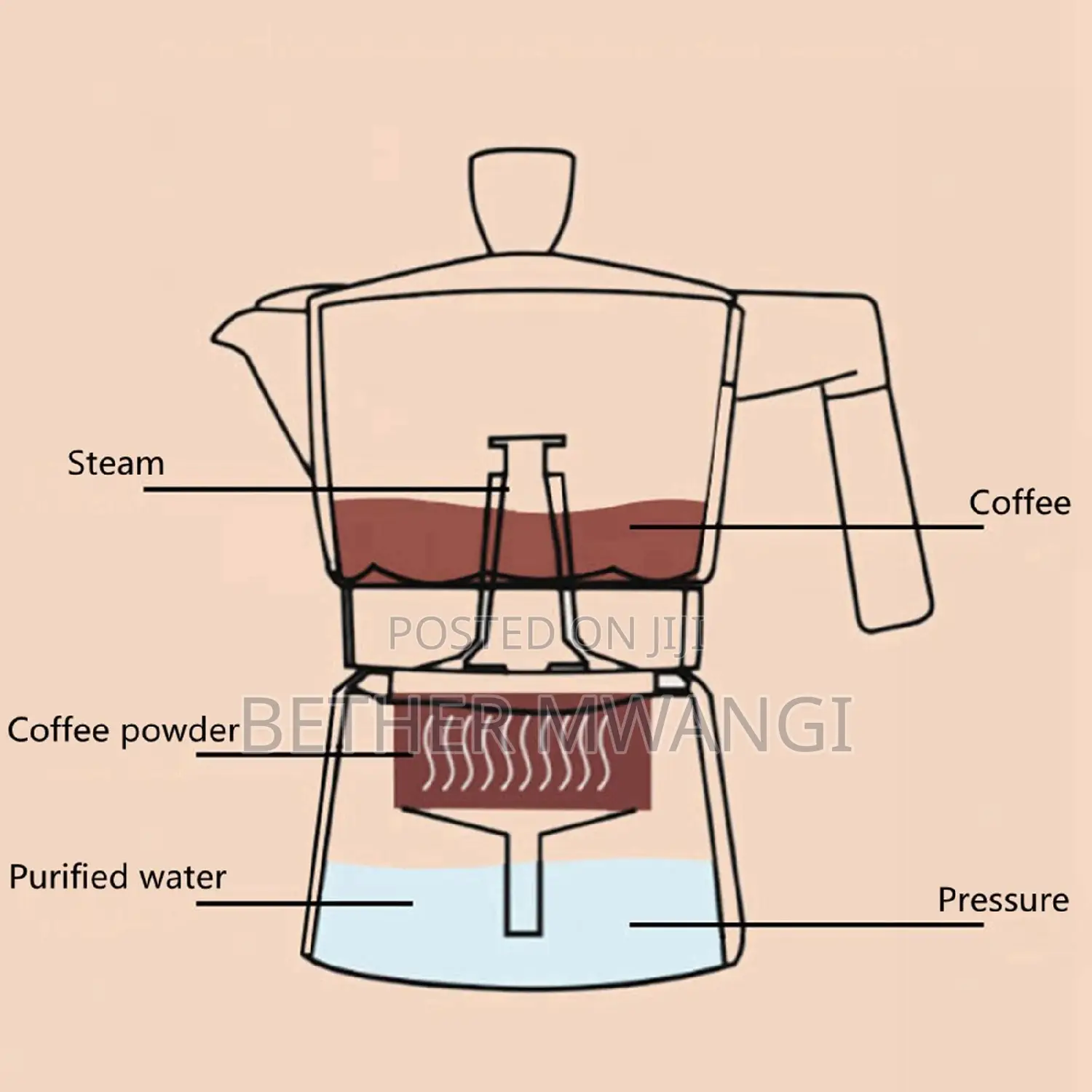 A moka pot is very easy to use. It is easy to keep for home and office.