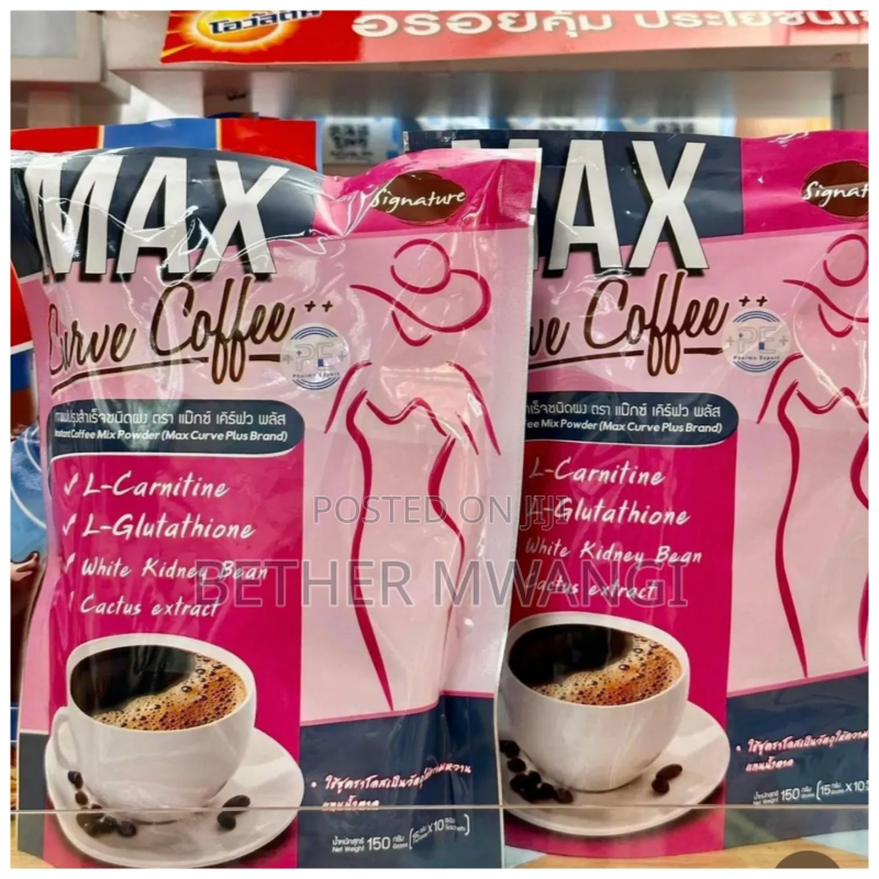 The instant coffee powder for a slender body shape Properties: MAX Curve Coffee new package contains the better-quality ingredients than the original. It's sugar free and provides high fiber. The ingredients are well-selected and valuable for women and men who love the health. The ingredients will help accelerate fat burning, firm up the body, reduce appetite, accelerate metabolism, and trap starch. The coffee lovers should not miss it! Let's take care of the health together, whether weight loss and skin improvement. It's easy to drink with sweet aroma and a delicious taste for a slender body. It answers all your problems within one. Benefits: Traps fats Reduces appetite and accelerates metabolism Helps firm up the body Helps lose weight for a slender and beautiful body as desire Contains key ingredients to also help with great skin too.