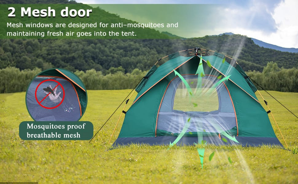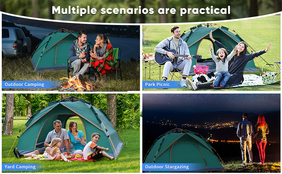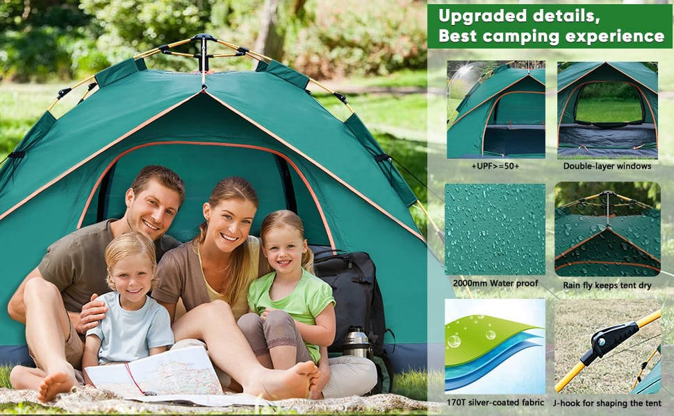 • Family travel Fully automatic quick-open tent Easy to set up Silver rubber sunscreen Breathable ventilation Insect proof Rain proof Two sizes Comfortable and light travel