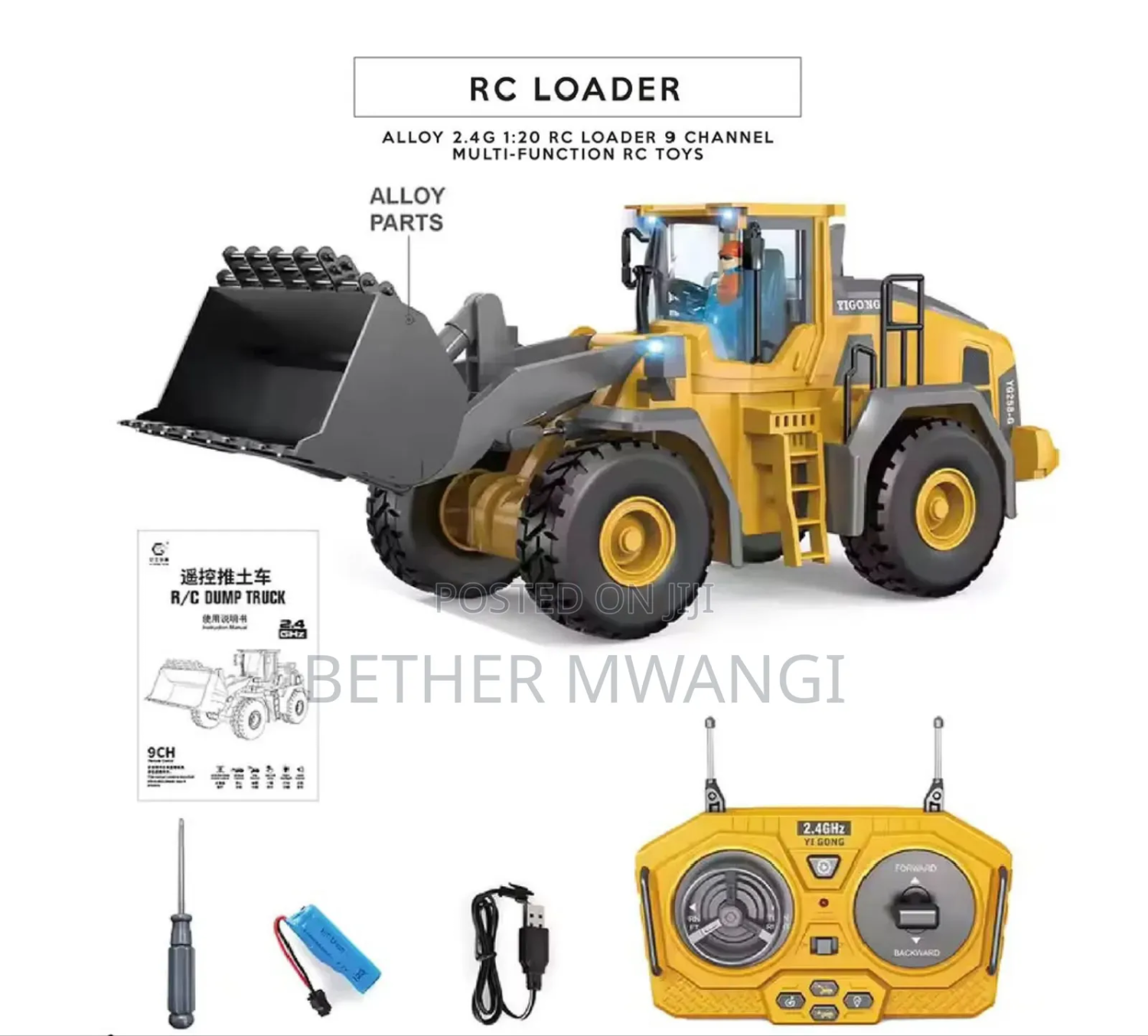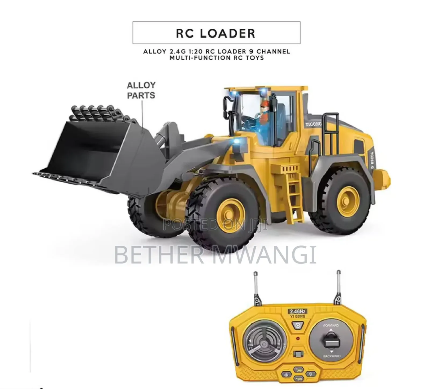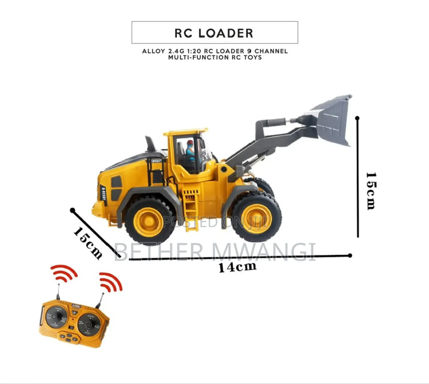 Premium Durable Alloy Construction Built with high-quality alloy materials.2.4GHz Remote Control System, this loader offers stable and interference-free operation. The advanced radio frequency technology allows multiple RC toys to operate simultaneously without signal clashes, making it ideal for group play or RC competitions. 1:20 Scale Realistic Design replicates the intricate details of a real excavator, from its vibrant yellow paint job to its authentic mechanical features. 9-Channel Multifunctional Control including: Forward, backward, left, and right movement, 360-degree rotating cabin.Rechargeable Lithium Battery. The included USB charging cable makes it easy to recharge the battery. All-Terrain Capability. LED Lights for Night Play Equipped with bright LED lights.