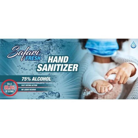 Safari Fresh Hand Sanitizer is a 70% alcohol based liquid/gel that kills 99.9% of germs and is gentle on hands. Its fast drying action leaves no sticky/liquid residue and is specially formulated for use in high risk areas. It has a broad spectrum of anti-microbial activity to instantly kill 99.9% of VIRUSES, BACTERIA, SPORES, GERMS and FUNGI that cause illness.