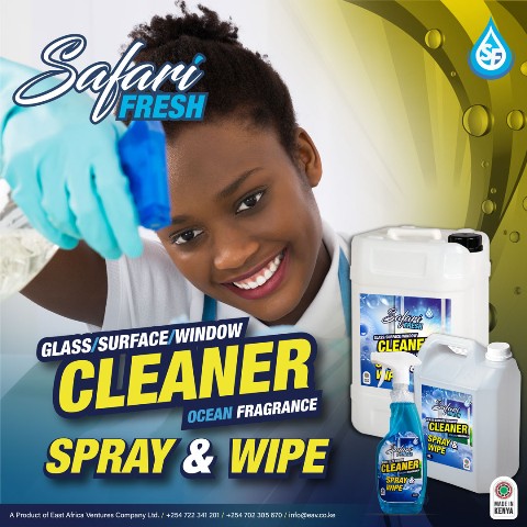 SafariFresh Glass Window & Tile cleaner cuts through germs, grease, fingerprints and dirt with ease leaving surfaces fresh and bright.