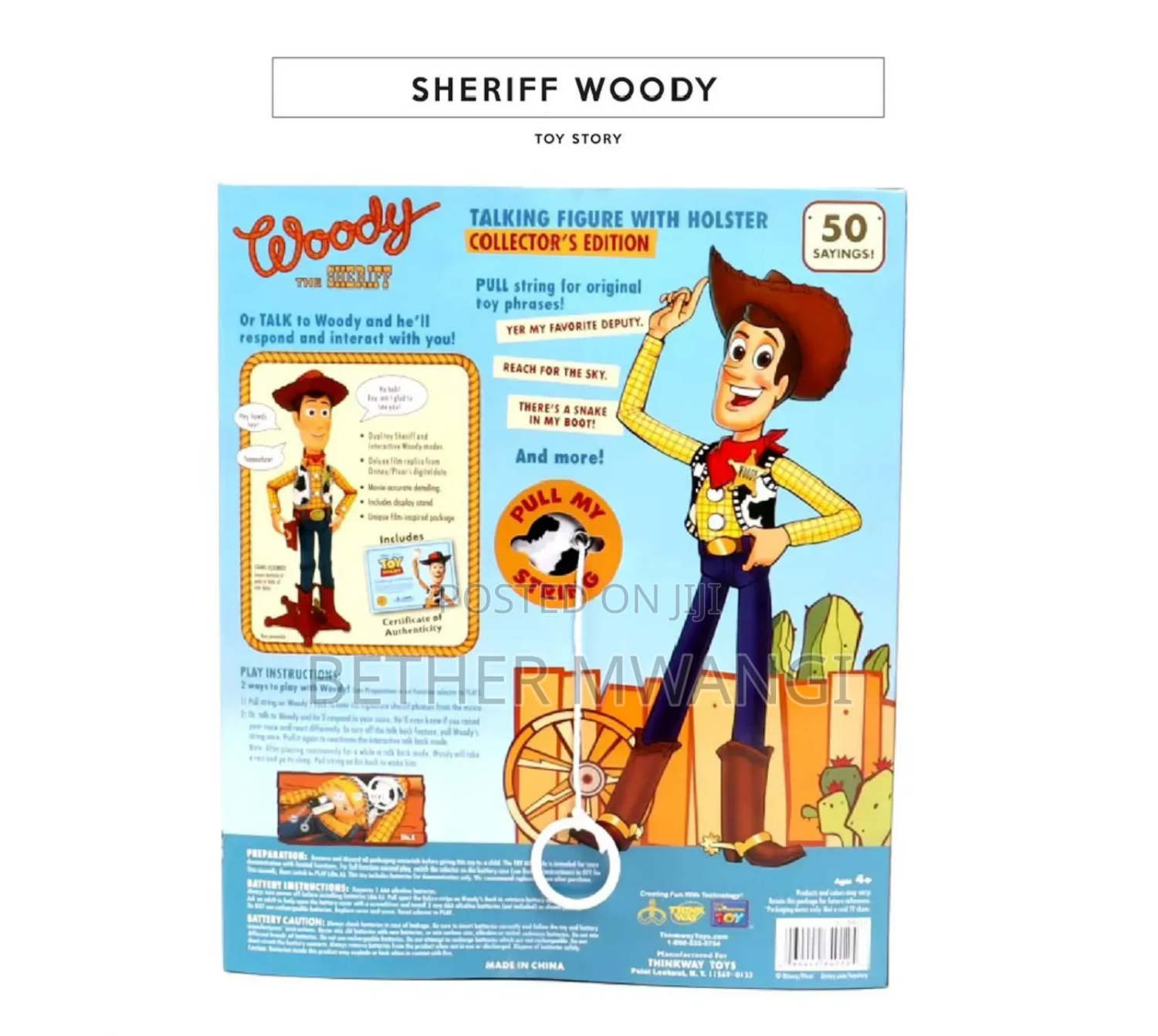 Ring the Magic of Toy Story to Life! Step into the world of Toy Story with this authentic Sheriff Woody action figure. Perfect for kids, collectors, and fans of all ages, Woody is here to join your adventures and bring a little Wild West charm to your day! Features You'll Love: Authentic Design: Faithfully recreated from the Toy Story movies, this Sheriff Woody toy captures every detail, from his stitched yellow plaid shirt and blue jeans to his iconic red bandana and brown cowboy boots. Pull-String Action: Just like in the movies, Woody has a working pull-string on his back that activates his classic phrases, including "Reach for the sky!" and "There'sa snake in my boot!" Posable Limbs: Woody's arms, legs, and head are fully posable, making it easy to recreate your favourite scenes or dream up new ones.