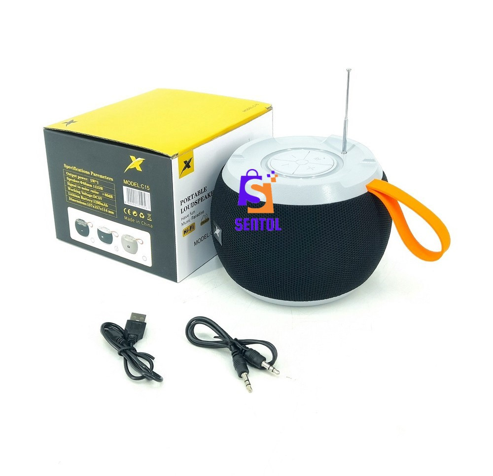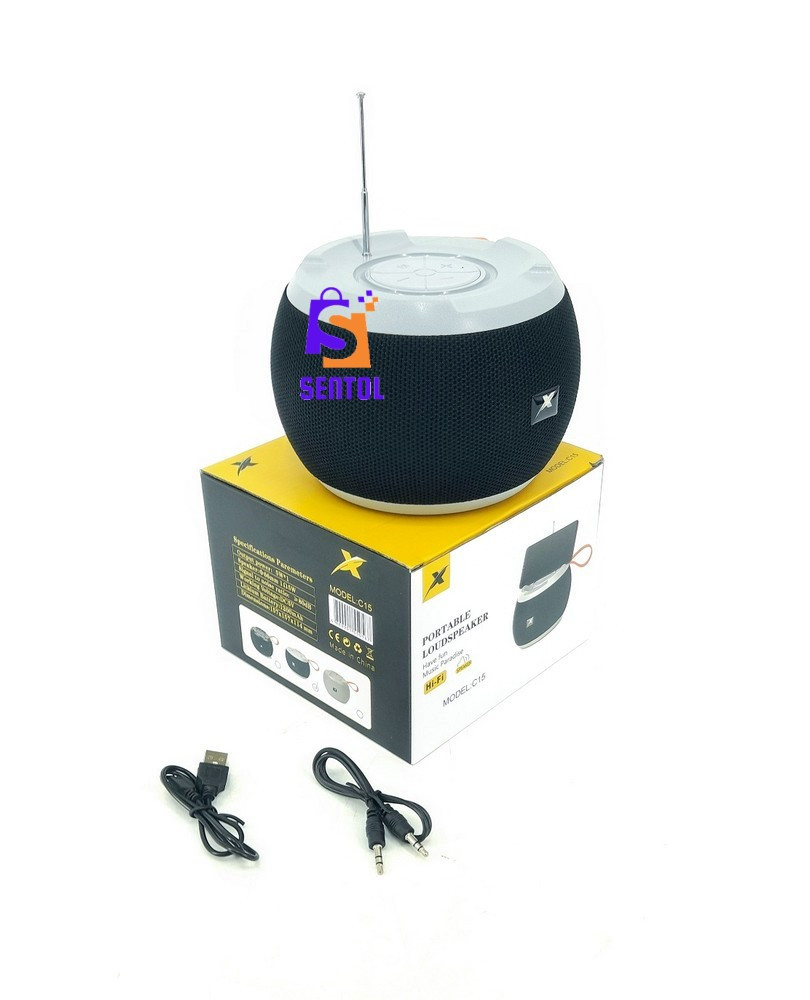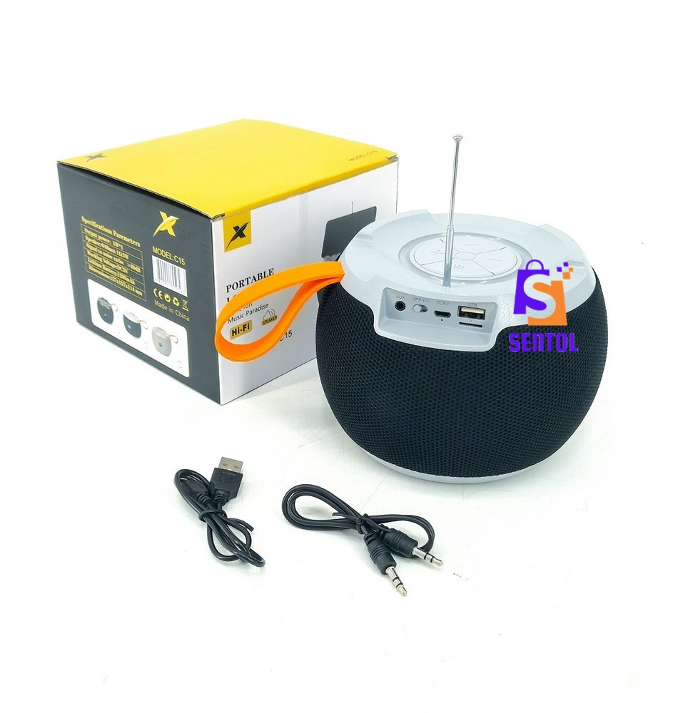 - Package contains: C15 speaker, USB charging cable, 3.5mm-to-3.5mm stereo cable