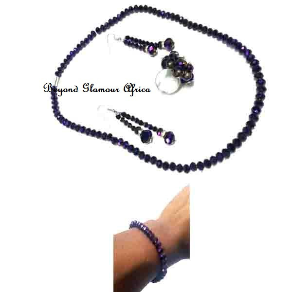 Classic jewelry set. Made with small crystal beads that overlaps on each other to bring out a a classy design, blends well with other colors and outfit designs. This jewelry set includes bracelet,ring,earrings and necklace .It’s great first anniversaries and birthdays